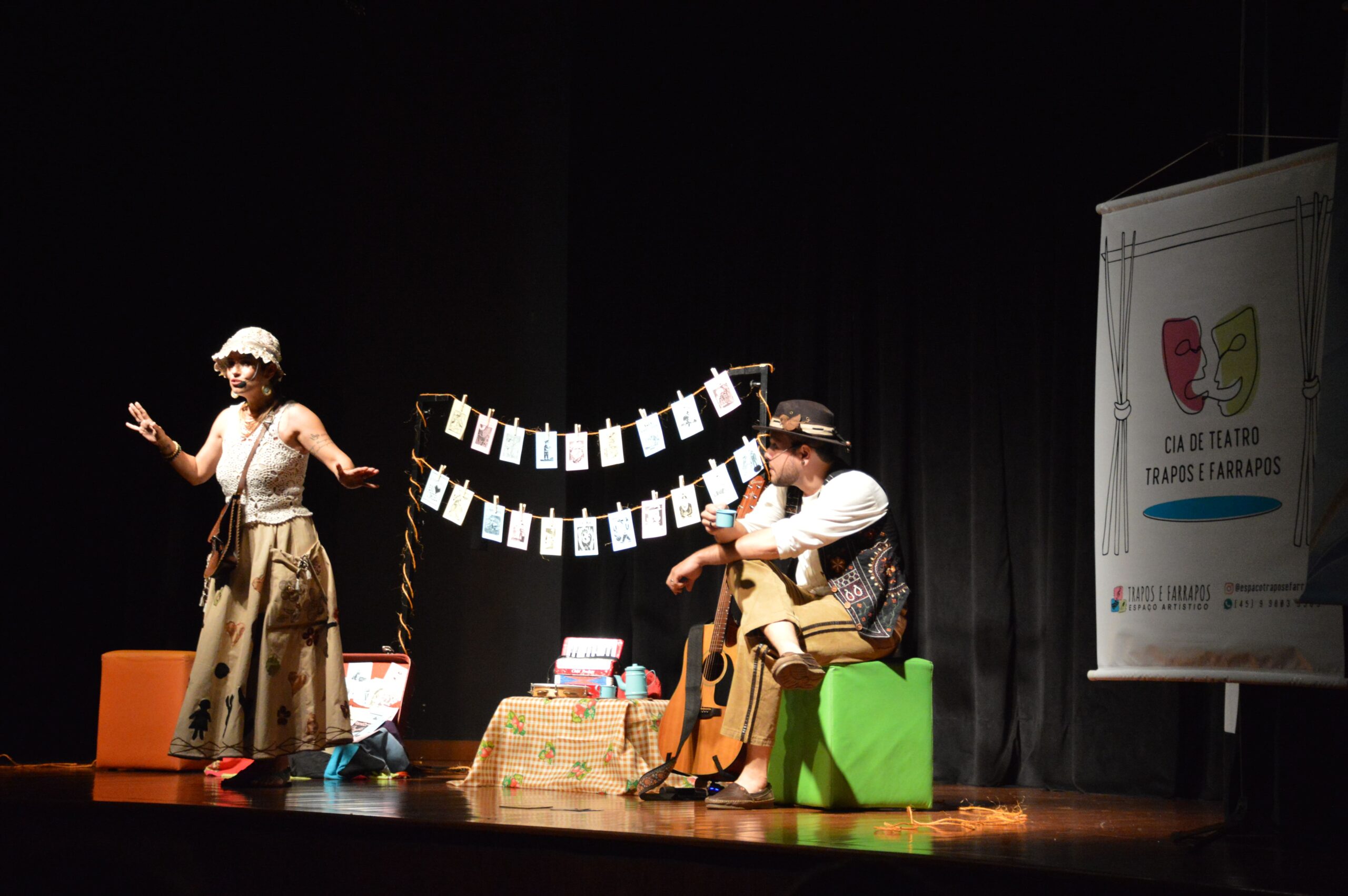 – No palco a apresentação das princesas e super heróis que chegam para encantar o público com histórias, brincadeiras e interação com as crianças distribuindo pirulitos e balas envolvendo o público em jogos e desafios